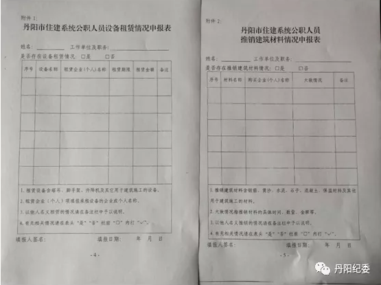 结合本次廉洁纪律通知的相关要求,针对住建系统管理和服务对象众多、业务复杂,建筑行业资金流动频繁、资金需求量大、系统存在违规设备租赁、违规推销建筑材料等信访反映的情况,派驻组一方面协助该局制定《丹阳市住建系统公职人员设备租赁情况申报表》、《丹阳市住建系统公职人员推销建筑材料情况申报表》,要求公职人员进行自查自纠,有情况及时如实上报,无情况实行零报告,全系统共480余人进行申报并在局机关纪委备案,对不如实申报、瞒报、漏报经查证存在违规行为的从严处理;另一方面对住建系统公职人员提出“十不准”廉洁自律承诺要求,个人签订廉洁自律承诺书,进一步从意识上自觉筑牢廉洁思想防线。