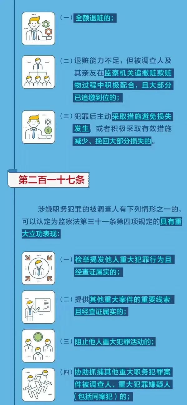 图解监察法实施条例丨哪些情形可以认定为积极配合调查、积极退赃、具有重大立功表现?