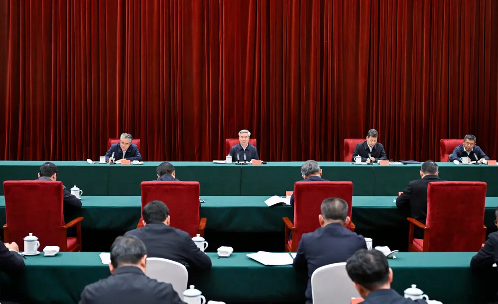 3月17日至20日,中共中央政治局常委、中央纪委书记李希到江西调研。这是3月20日,李希在南昌主持召开座谈会。新华社记者 岳月伟 摄